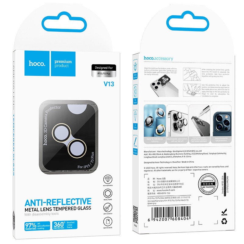 Προστασία Κάμερας Hoco 3D Metal V13 για Apple iPhone 15 / iPhone 15 Plus