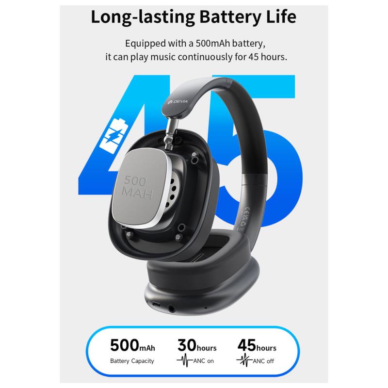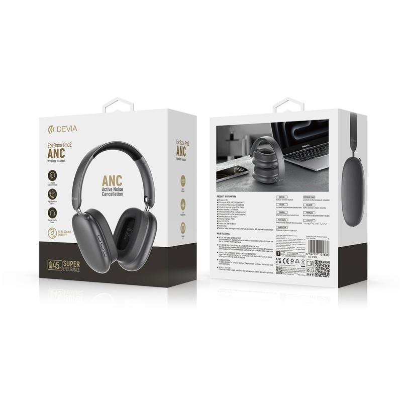 Ασύρματα Ακουστικά Κεφαλής Devia EM035 ANC EarBass Pro2 Σκούρο Γκρι