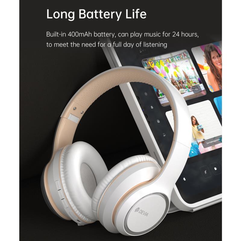 Τα ασύρματα ακουστικά Devia είναι κομψά, διαθέτουν εργονομικό σχεδιασμό και χαρίζουν σταθερότητα και άνεση ακόμα και μετά από πολύωρη χρήση. Συνδέονται μέσω τεχνολογίας Bluetooth πρωτόκολλο 5.2, προσφέροντας γρήγορη και απρόσκοπτη συνδεσιμότητα χωρίς κολλήματα και απώλεια σήματος. Παρέχουν αυτονομία έως και 24 ώρες συνεχόμενης λειτουργίας, ώστε να απολαμβάνετε μουσική και επικοινωνία όπου και αν βρίσκεστε! Τα ακουστικά είναι αναδιπλούμενα και μπορούν να χρησιμοποιηθούν και ενσύρματα με καλώδιο Aux. Διαθέτουν ενσωματωμένο μικρόφωνο για κλήσεις handsfree. Τα ακουστικά είναι αναδιπλούμενα και μπορούν να χρησιμοποιηθούν και ενσύρματα με καλώδιο Aux.