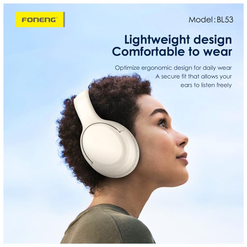 Το FONENG BL53 είναι ένα αναδιπλούμενο Bluetooth headset σχεδιασμένο για άνετη καθημερινή χρήση, με μεγάλη διάρκεια μπαταρίας, σταθερή σύνδεση και καθαρό ήχο. Είναι ιδανικό για μουσική, κλήσεις και πολύωρη χρήση.