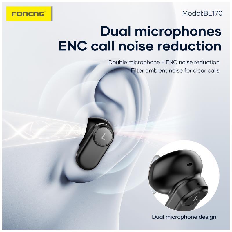 Τα FONENG BL170 είναι True Wireless ακουστικά που συνδυάζουν ενεργή ακύρωση θορύβου (ANC) και περιβαλλοντική ακύρωση θορύβου (ENC), προσφέροντας καθαρό ήχο και σταθερή σύνδεση. Με Bluetooth 6.0, οδηγούς 11mm και ελαφρύ σχεδιασμό, αποτελούν ιδανική επιλογή για καθημερινή χρήση, μουσική και κλήσεις. Η θήκη φόρτισης 300mAh προσφέρει επιπλέον αυτονομία και προστασία μπαταρίας, ενώ η συνολική εμπειρία χρήσης είναι άνετη πρακτική.