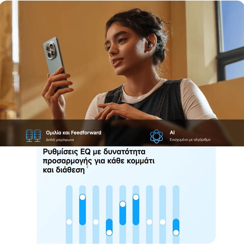 – Τεχνολογία AI στα μικρόφωνα μειώνει τους εξωτερικούς θορύβους κατά τη διάρκεια των κλήσεων, επιτρέποντάς σου να ακούγεσαι καθαρά ακόμη και σε θορυβώδη περιβάλλοντα