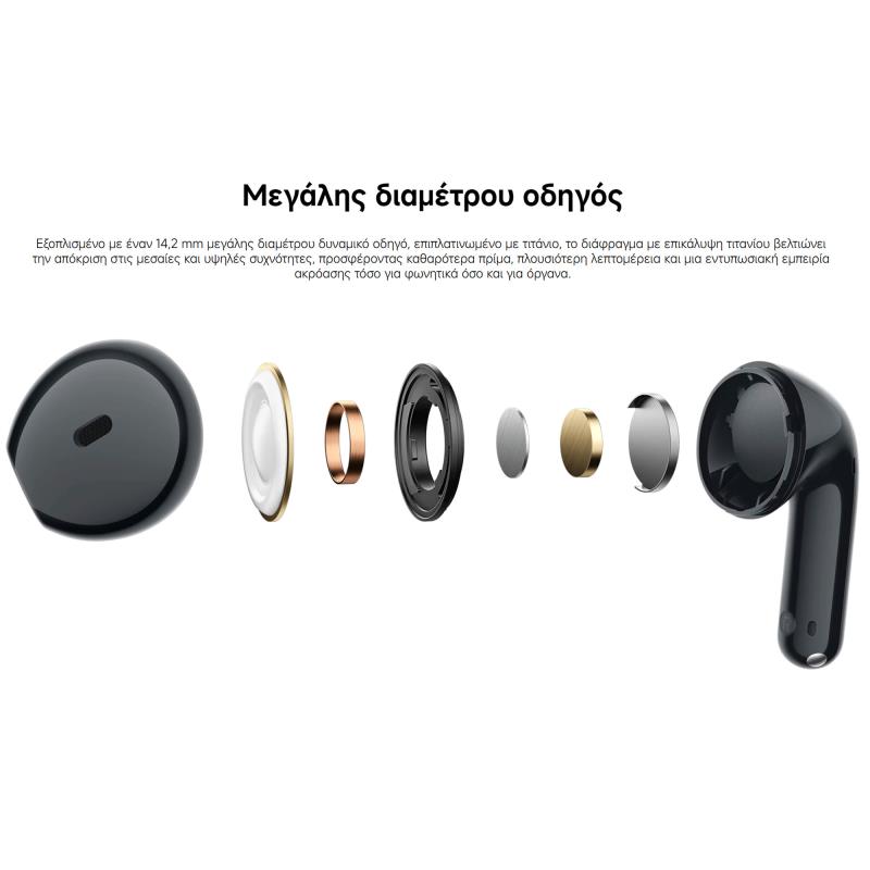 – Μεγάλος δυναμικός οδηγός 14.2mm με διάφραγμα τιτανίου για καθαρό & δυνατό ήχο