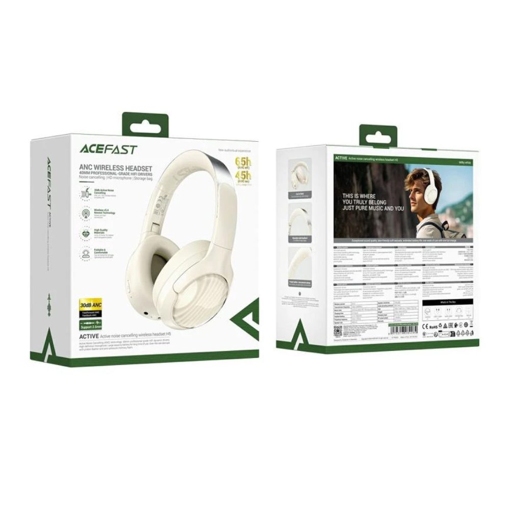 Wireless Ακουστικά Hi-Fi Stereo Acefast H5 30db ANC AUX 500mAh v5.4 Milky White με HD Μικρόφωνο Memory Foam Μαξιλαράκια και Θήκη
