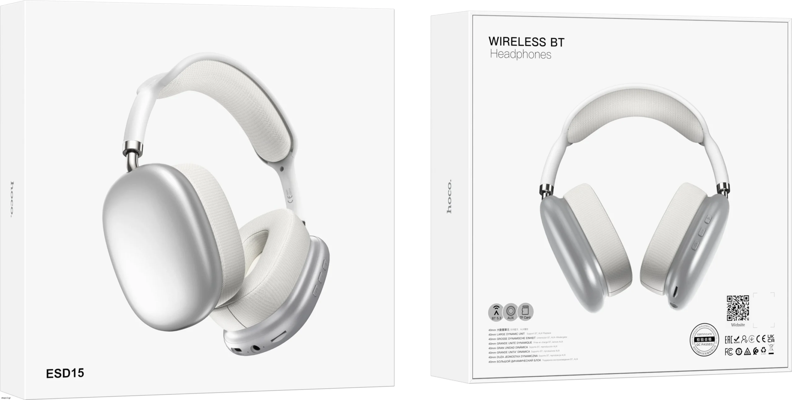Wireless Ακουστικά Stereo Hoco. ESD15 Max Shadow V5.3 400mAh με υποδοχή Micro SD, Μικρόφωνο και AUX Ασημί