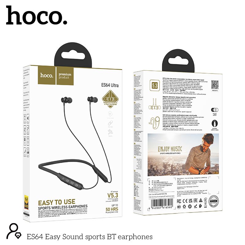 Τα ασύρματα ακουστικά Hoco ES64 προσφέρουν κορυφαία ποιότητα ήχου Hi-Fi, εξασφαλίζοντας καθαρή και πλούσια ακουστική εμπειρία. Με την τελευταία έκδοση Bluetooth 5.3, παρέχουν σταθερή σύνδεση και γρήγορο συγχρονισμό με τις συσκευές σας. Διαθέτουν μπαταρία 200mAh, που προσφέρει μεγάλη αυτονομία για κλήσεις και μουσική, ενώ ο μαγνητικός σχεδιασμός τους επιτρέπει εύκολη αποθήκευση και αποτρέπει το μπέρδεμα των καλωδίων όταν δεν χρησιμοποιούνται. Τα Hoco ES64 είναι ιδανικά για όσους αναζητούν άνεση, στυλ και υψηλή ποιότητα ήχου σε ένα ζευγάρι ακουστικών για αθλητική και καθημερινή χρήση.