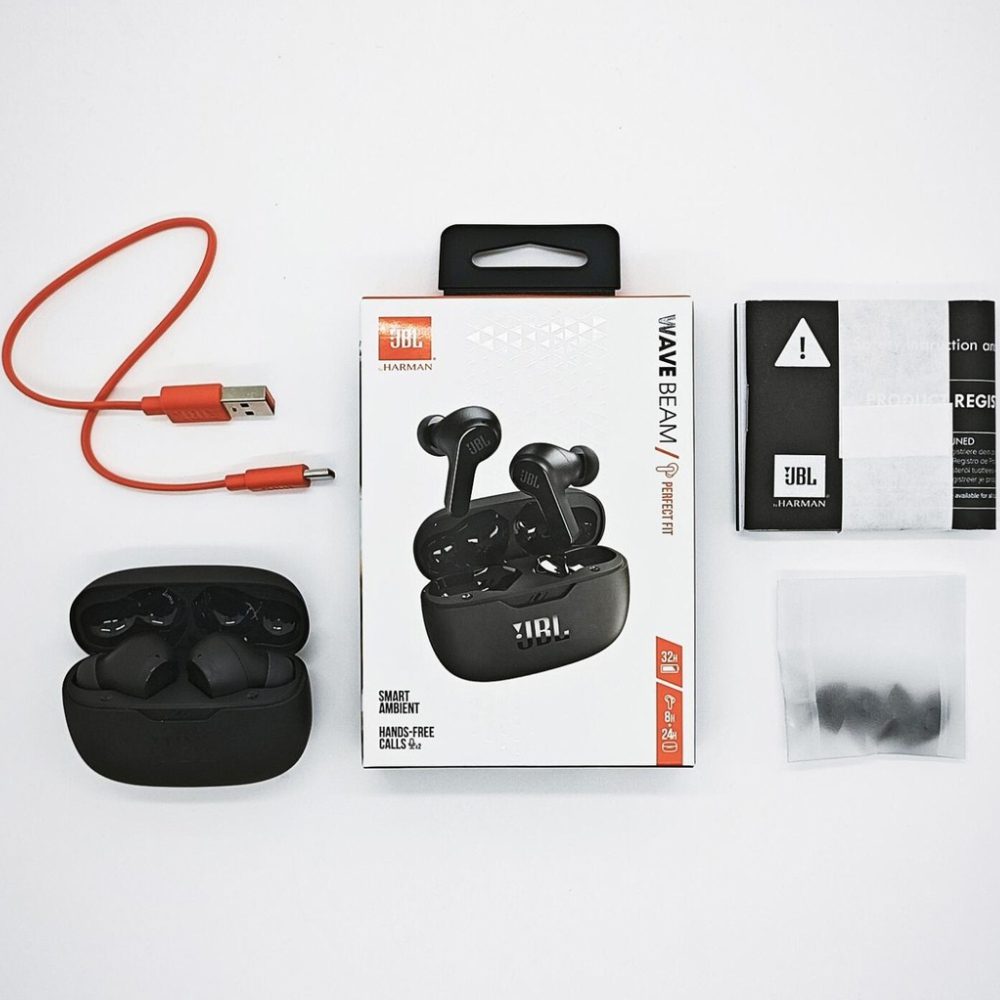 Wireless Hands Free JBL Wave Beam Buds με TalkThru έως 32 Ώρες Λειτουργίας IP54 και Θήκη Φόρτισης Μαύρα