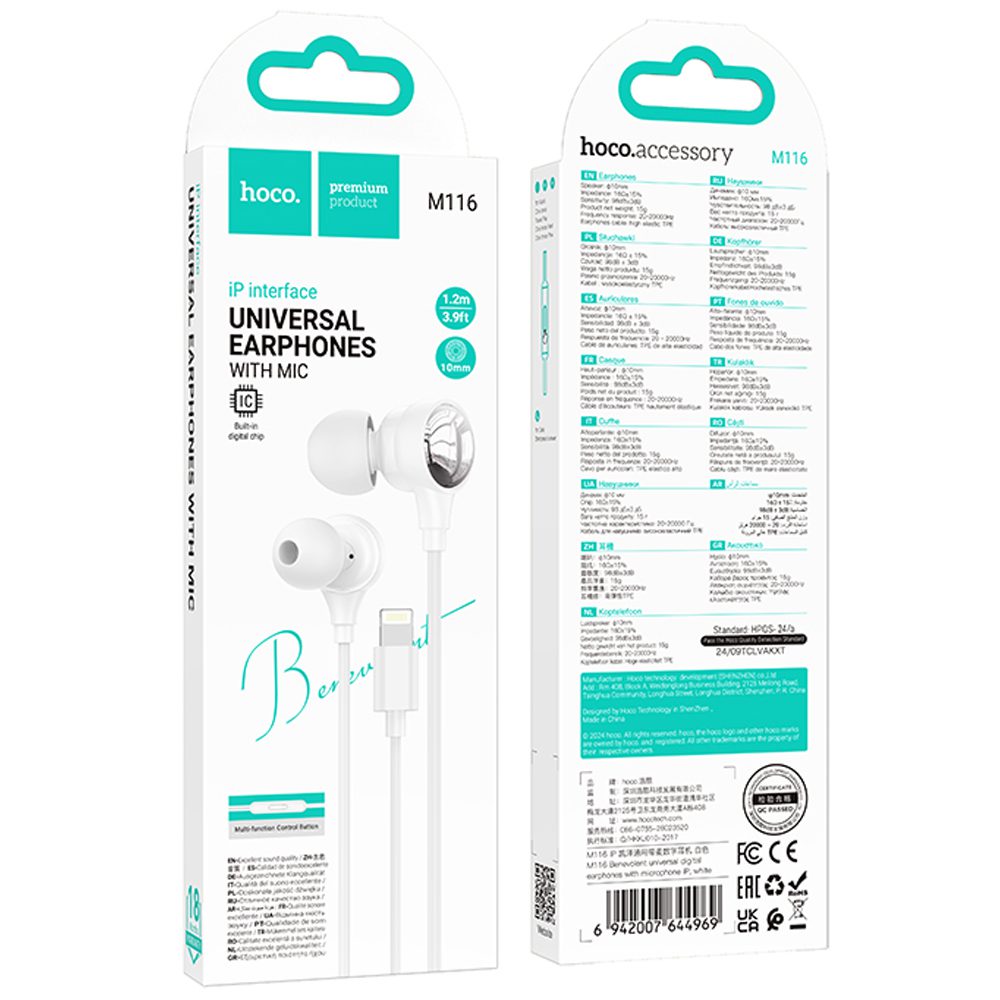 Hands Free Hoco M116 Benevolent με Μικρόφωνο, Βύσμα Lightning Λευκά 1.2m