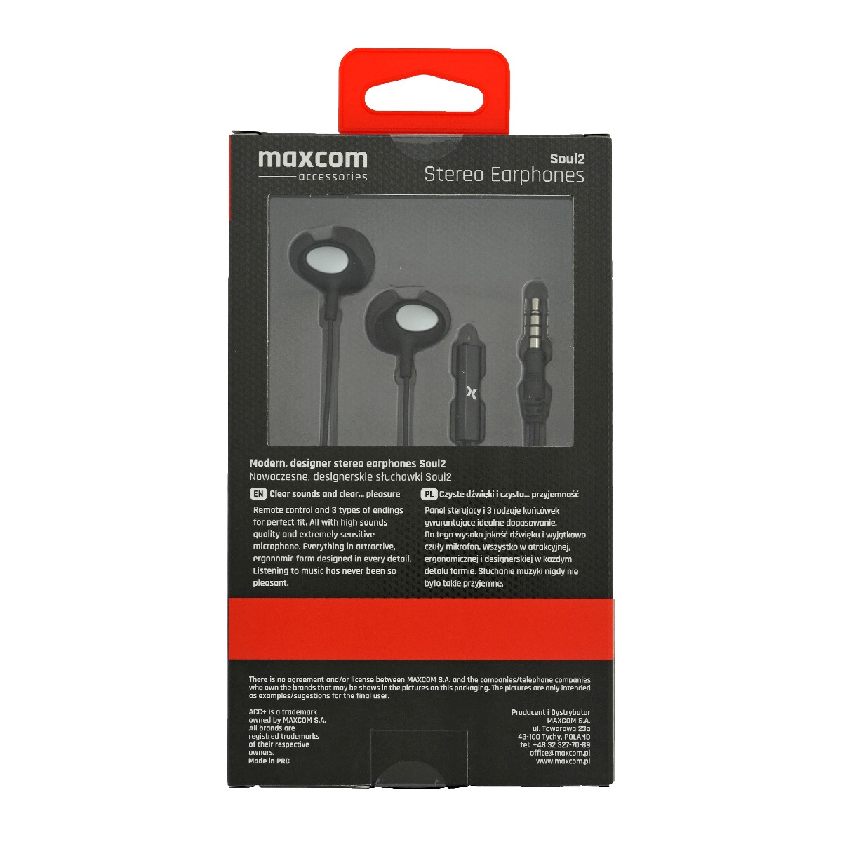 Hands Free Maxcom Soul 2 Stereo Earphones 3.5mm Μαύρα με Μικρόφωνο και Πλήκτρο Απάντησης/Σίγασης. Ανεξαρτησία: 16Ω±15% Ευαισθησία: 95dB Διάμετρος Ηχείου: 10mm Μήκος: 120cm Βάρος: 11g. Συμπεριλαμβάνονται 3 είδη earcups