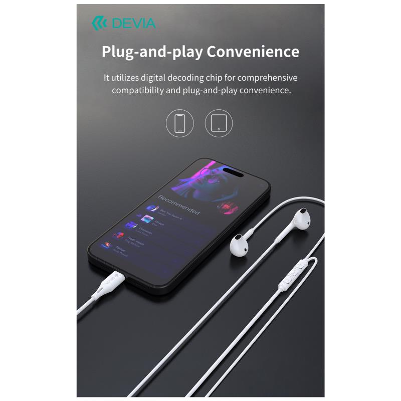 Τα Devia Stereo A3 EM102 αποτελούν μια ιδανική επιλογή για όσους αναζητούν ενσύρματα ακουστικά hands free με καθαρό στερεοφωνικό ήχο, εργονομικό σχεδιασμό και συμβατότητα με συσκευές Apple (Lightning). Διαθέτουν ενσωματωμένο μικρόφωνο και χειριστήριο πολλαπλών λειτουργιών, επιτρέποντάς σας να ελέγχετε τις κλήσεις και την αναπαραγωγή χωρίς να χρειάζεται να αγγίξετε το κινητό σας.