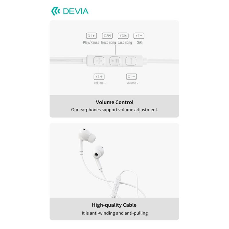 Hands Free Stereo Devia EM048 Earpods USB C με Χειριστήριο & Μικρόφωνο Smart Λευκό