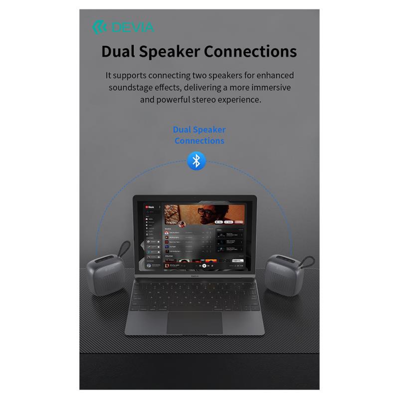 Το Devia EM501 Sound Lite2 είναι ένα συμπαγές και φορητό ηχείο Bluetooth που παρέχει ισχυρό ήχο 5W σε κομψή σχεδίαση. Ιδανικό για μουσική εν κινήσει, προσφέρει καθαρή ποιότητα ήχου και στιβαρή κατασκευή, καθιστώντας το ιδανικό για χρήση τόσο σε εσωτερικούς όσο και σε εξωτερικούς χώρους. Με συνδεσιμότητα Bluetooth, μπορείτε εύκολα να το συνδέσετε με τις συσκευές σας για ακρόαση χωρίς προβλήματα. Ο ελαφρύς σχεδιασμός και η μπαταρία μεγάλης διάρκειας εξασφαλίζουν ότι μπορείτε να απολαμβάνετε τις αγαπημένες σας μελωδίες οποτεδήποτε και οπουδήποτε. Σε εκδρομές, σε πάρτι, είτε χαλαρώνοντας στο σπίτι, το Devia Sound Lite2 σας χαρίζει όμορφες μουσικές στιγμές με στυλ!