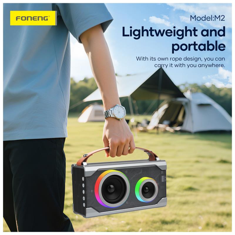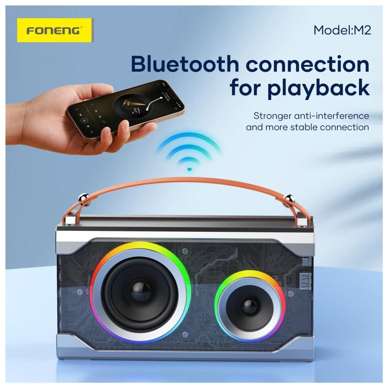 Το φορητό ηχείο Bluetooth Foneng M2 Colorful συνδυάζει δυναμικό ήχο, σύγχρονη τεχνολογία και εντυπωσιακό σχεδιασμό, αποτελώντας ιδανική επιλογή για μουσική. Προσφέρει σταθερή και γρήγορη ασύρματη σύνδεση με τις συσκευές σας, εξασφαλίζοντας άνετη και απρόσκοπτη αναπαραγωγή. Διαθέτει ισχύ 15W, προσφέροντας καθαρό και γεμάτο ήχο. Η μπαταρία με χωρητικότητα 5000mAh προσφέρει μεγάλη διάρκεια λειτουργίας, επιτρέποντάς σας να απολαμβάνετε τη μουσική σας έως 13 ώρες χωρίς διακοπές. Η φορητή κατασκευή το καθιστά εύκολο στη μεταφορά και κατάλληλο για καθημερινή χρήση ενώ ο πολύχρωμος φωτισμός του κερδίζει τις εντυπώσεις.