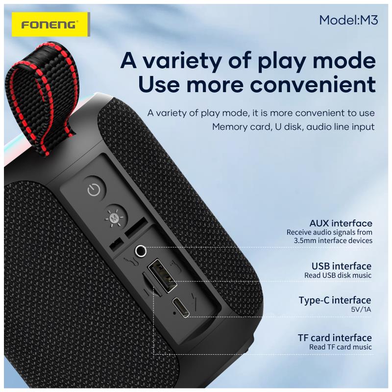 Φορητό Ηχείο Bluetooth Foneng M3 Deep Bass BT 5.4 2400mAh 10W Μαύρο