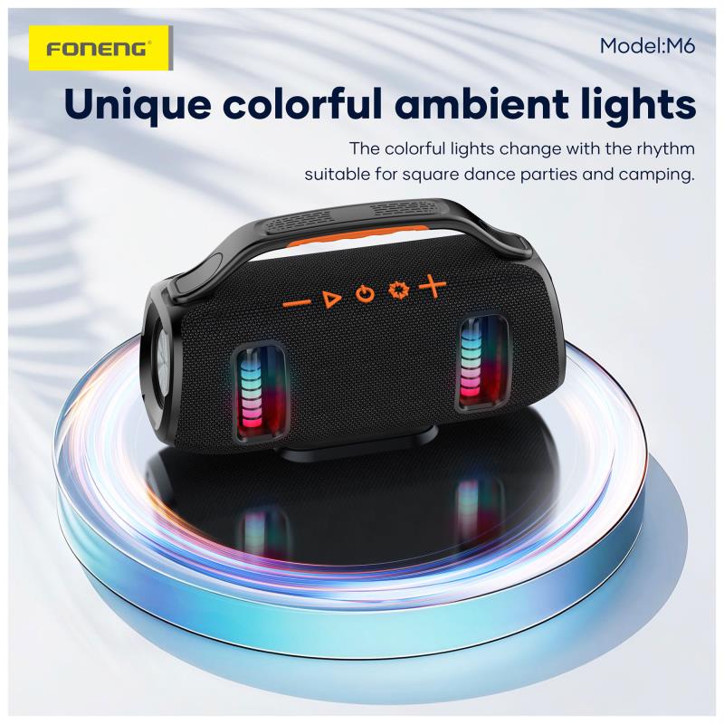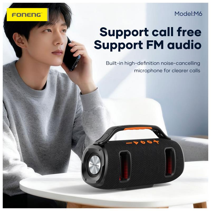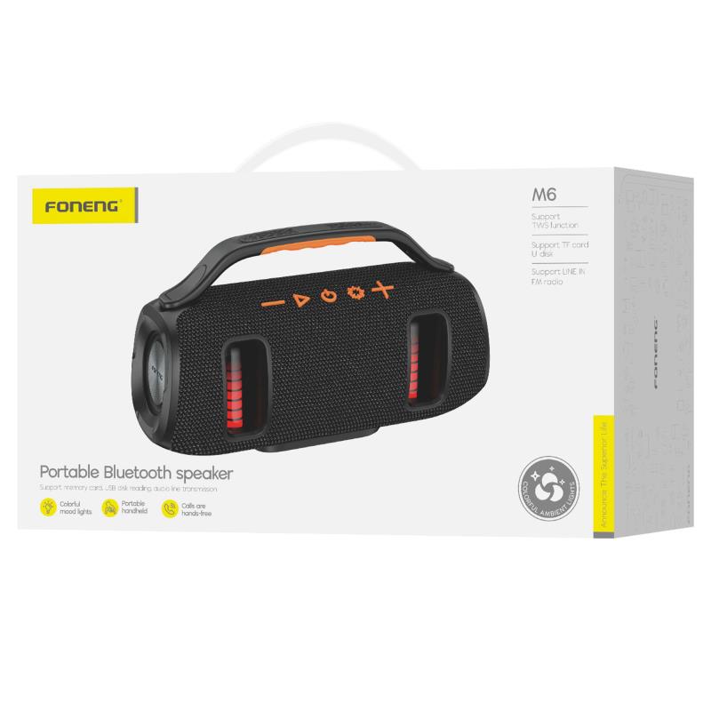 Φορητό Ηχείο Bluetooth Foneng M6 Deep Bass BT 5.3 2400mAh 15W με Λαβή Μαύρο