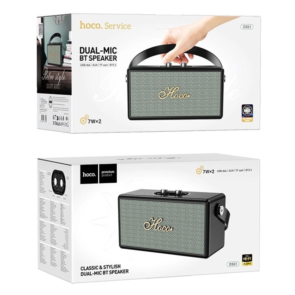 Φορητό Ηχείο Hoco DS61 Rhyme Retro Leather 14W BT V5.3 SD CARD AUX USB 2400mAh Black