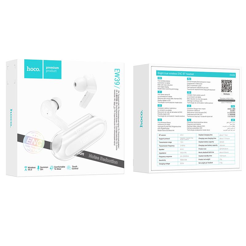 HOCO EW39 BRIGHT ΑΚΟΥΣΤΙΚΑ BLUETOOTH, ΛΕΥΚΟ, ENC