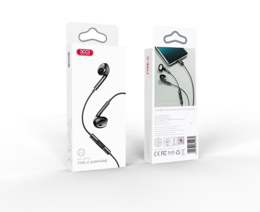 XO EP74 ΑΚΟΥΣΤΙΚΑ HANDSFREE TYPE-C, ΜΑΥΡΟ