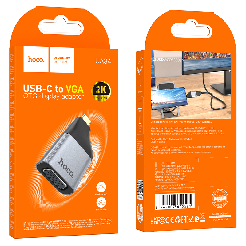 Αντάπτορας Hoco UA34 USB-C σε VGA 2k Γκρι