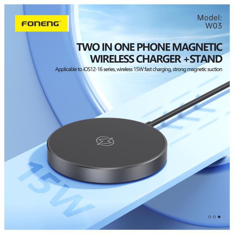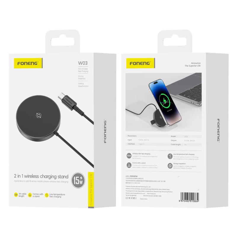 Ασύρματη Βάση Φόρτισης Μαγνητική Mini Foneng W03 15W με Stand & Καλώδιο 1m Μαύρο