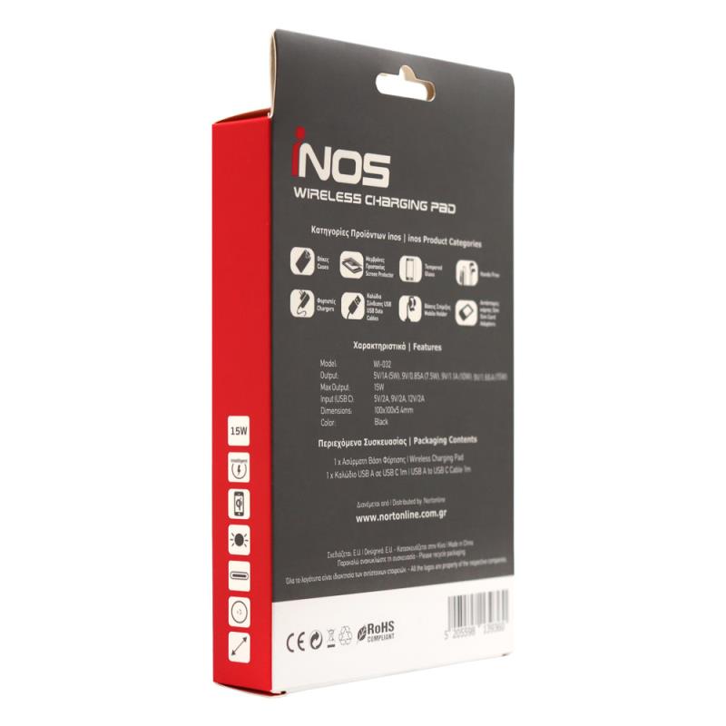Ασύρματη Βάση Ταχείας Φόρτισης Qi inos Μαύρο 15W