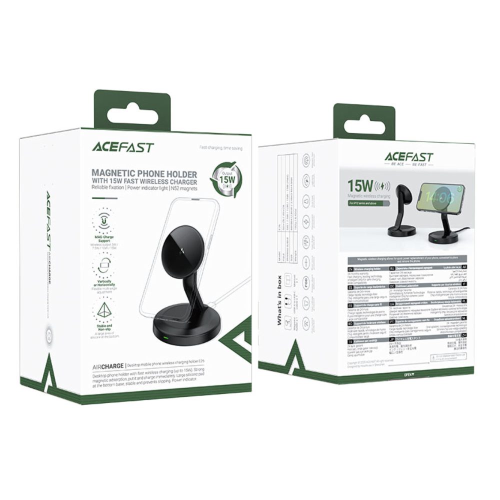 Επιτραπέζια Βάση Ασύρματης Φόρτισης Acefast E26 15W με LED Ένδειξη Λειτουργίας Συμβατή με MagSafe Μαύρη