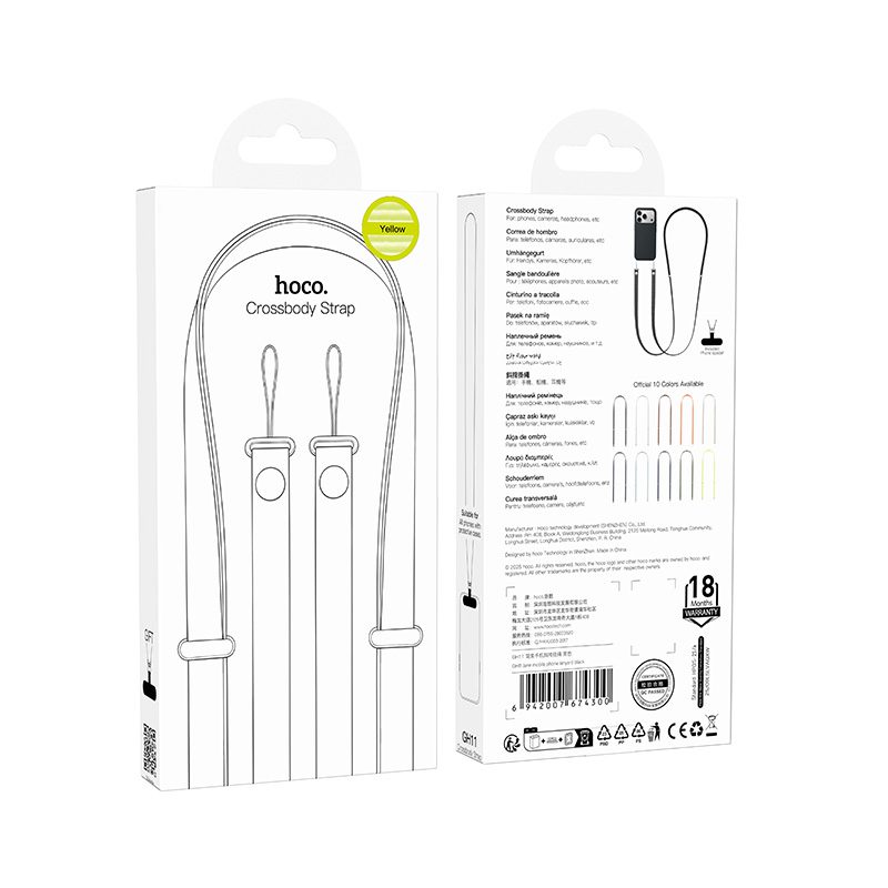 Universal Λουράκι Λαιμού Hoco GH11 για Θήκη Κινητού με Πυκνή Πλέξη και Μεταλλικες Λεπτομέρειες Κίτρινο