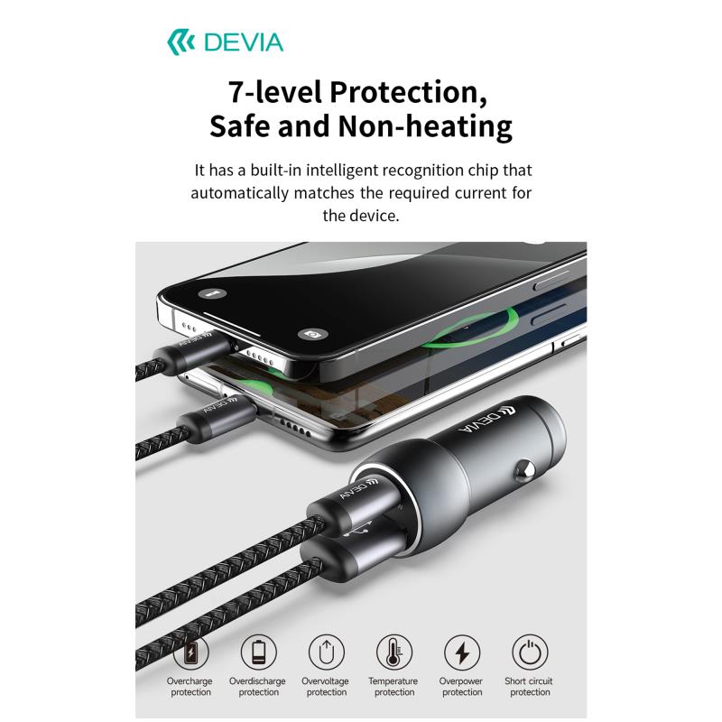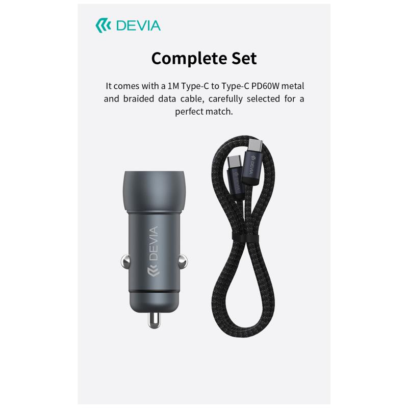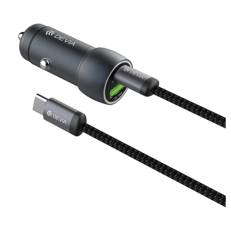 Φορτιστής Αυτοκινήτου Ταχείας Φόρτισης Devia EA507 Metal με Διπλή Έξοδο USB A & USB C PD QC 3.0 48W & Καλώδιο USB C σε USB C Extreme Σκούρο Γκρι