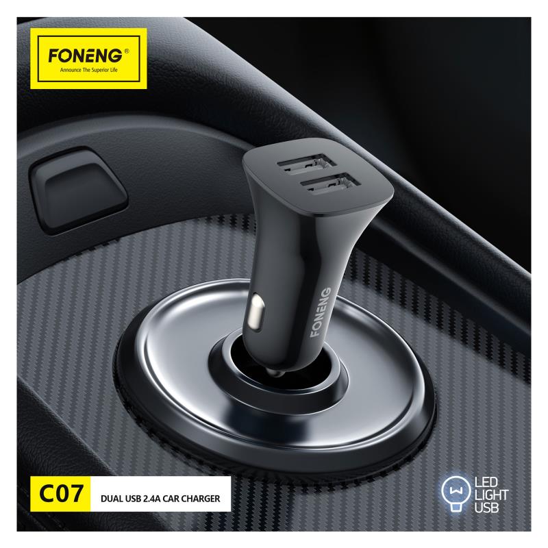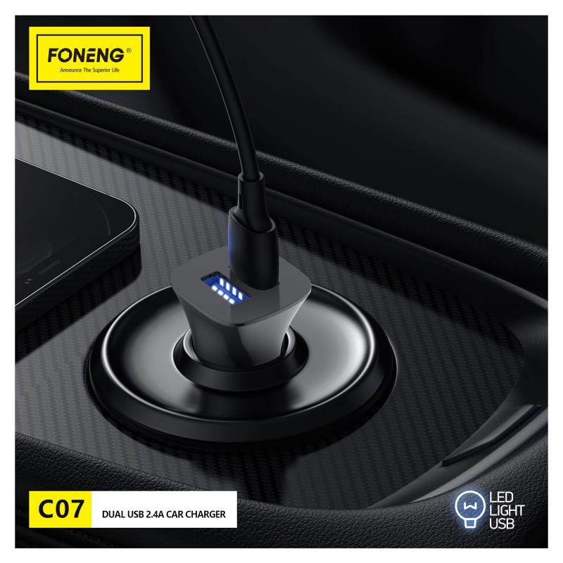Φορτιστής Αυτοκινήτου Ταχείας Φόρτισης Foneng C07 με Διπλή Έξοδο 2xUSB A 12W 2.4Α Μαύρο