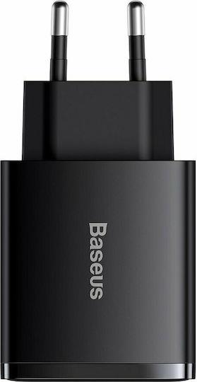 BASEUS COMPACT, ΦΟΡΤΙΣΤΗΣ ΓΡΗΓΟΡΗΣ ΦΟΡΤΙΣΗΣ, 3 ΘΥΡΕΣ, 30W, ΜΑΥΡΟΣ