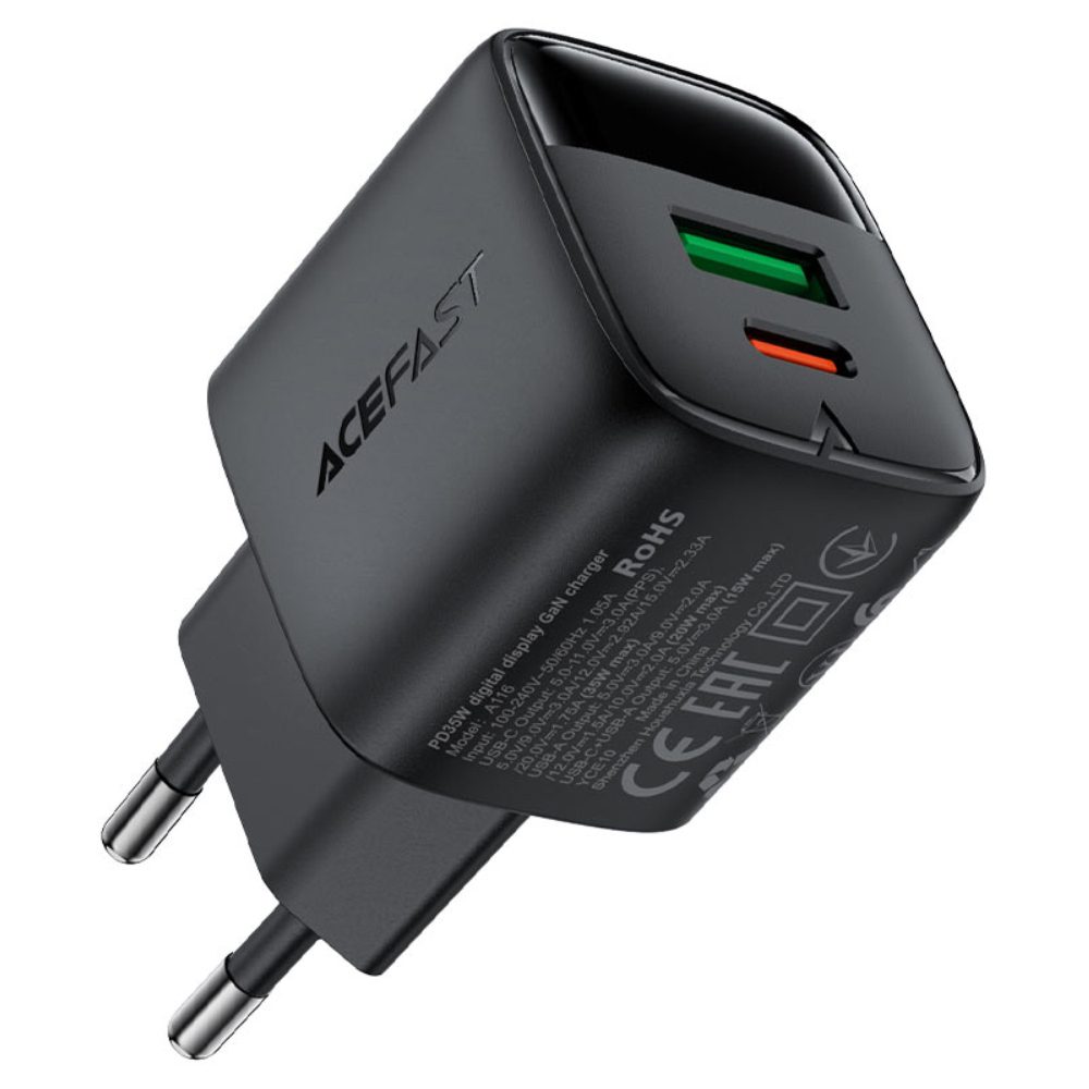 Φορτιστής Ταξιδίου Acefast A116 Fast Charging USB-C PD35W GaN με Digital Ένδειξη Μαύρος
