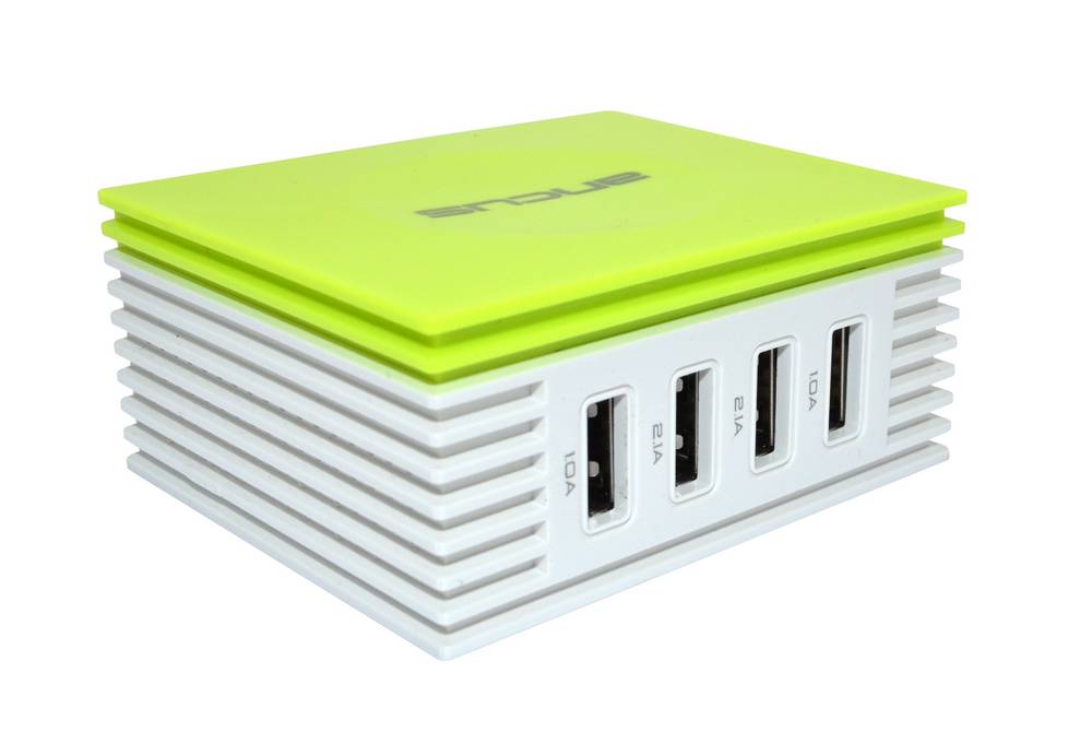 Φορτιστής Ταξιδίου Ancus Multi Charger 4 Usb 4.2A Λευκό – Πράσινο. Συμβατός με κάθε τύπο κινητού τηλεφώνου. (Input: AC100-240V 50/60Hz 0.65A // Output: DC5.0V=4.2A)