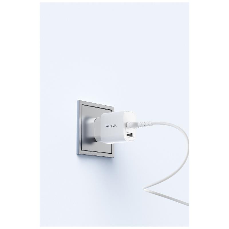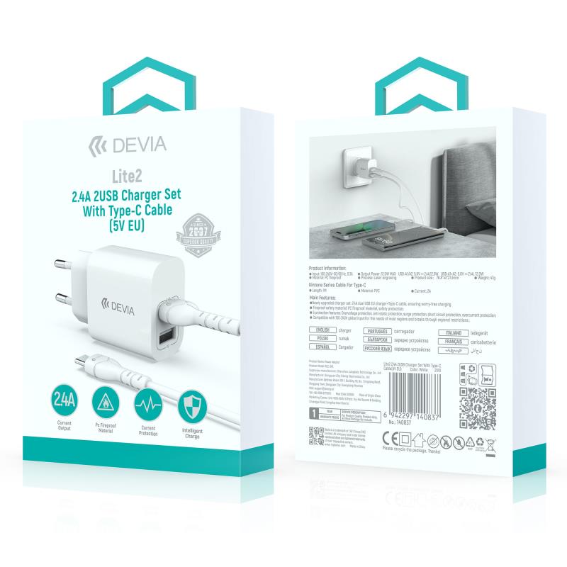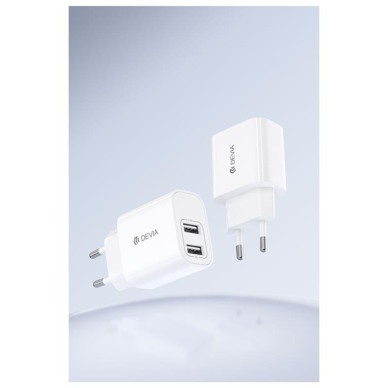 Φορτιστής Ταξιδίου Devia RLC-342 με Διπλή Έξοδο 2xUSB A 12W & Καλώδιο USB A σε USB C 1m Lite2 Λευκό