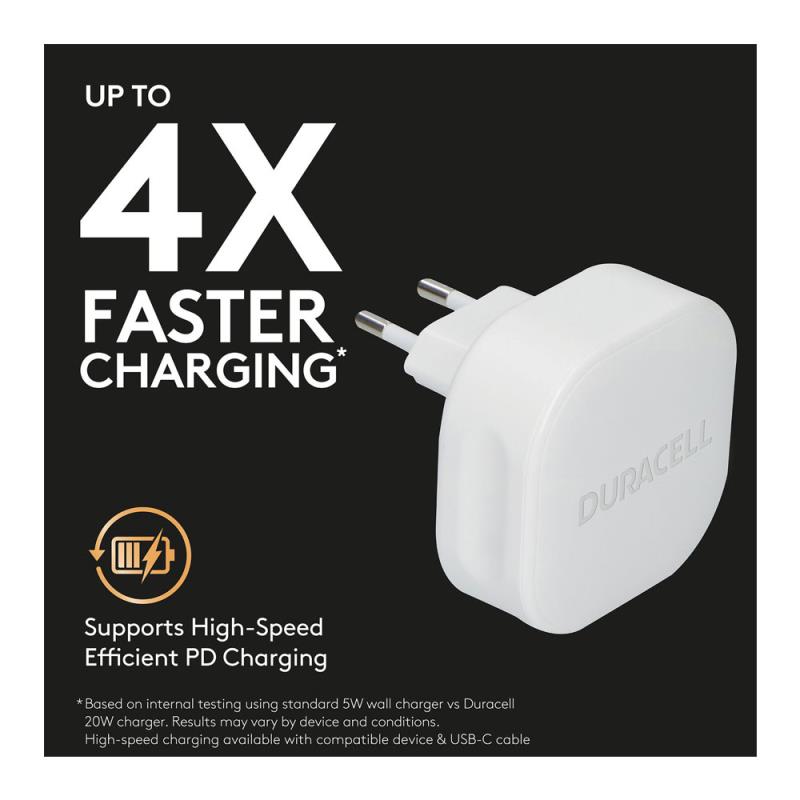 Φορτιστής Ταξιδίου Duracell με Έξοδο USB C PD 20W Λευκό