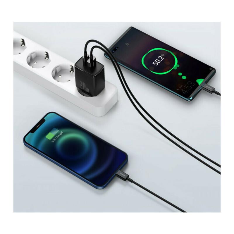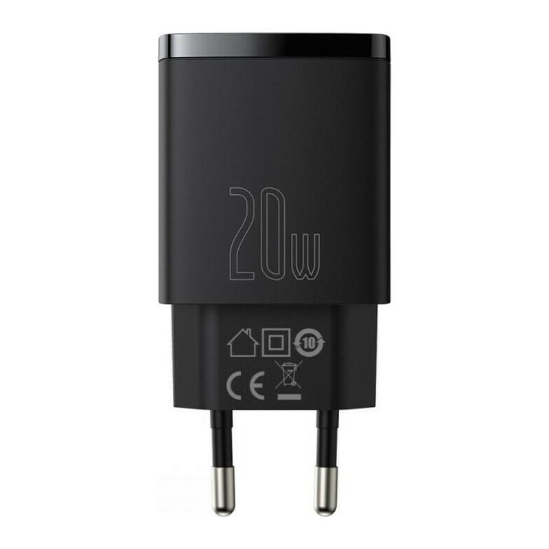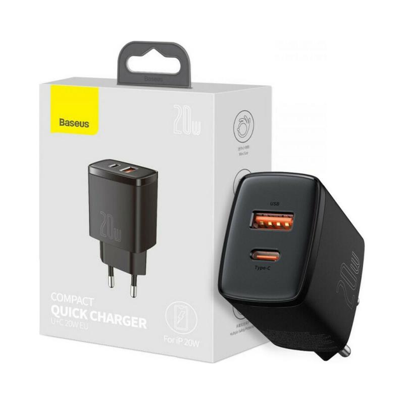 Φορτιστής Ταξιδίου Ταχείας Φόρτισης Baseus Compact με Διπλή Έξοδο USB A & USB C PD QC 20W 3A Μαύρο