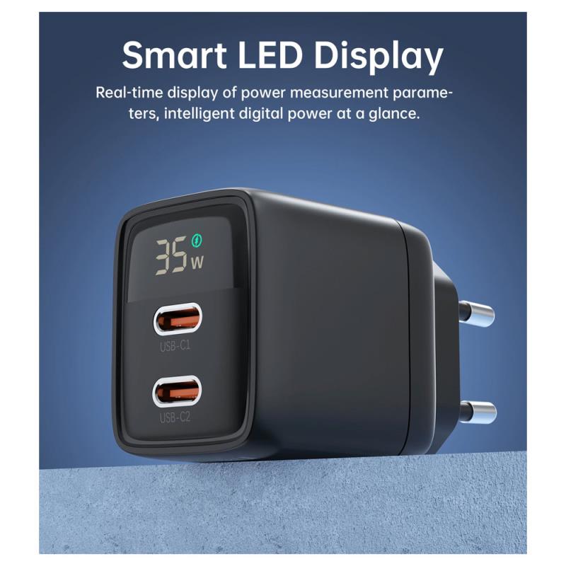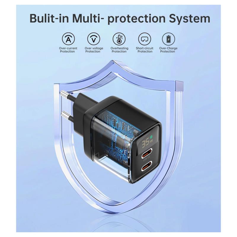 Ο φορτιστής ταξιδίου ταχείας φόρτισης Choetech PD6051 εξασφαλίζει γρήγορη και ασφαλή φόρτιση. Με την υποστήριξη της τεχνολογίας GaN (Gallium Nitride) και διπλή έξοδο USB C, προσφέρει μέγιστη ισχύ 35W και σας επιτρέπει να φορτίζετε ταυτόχρονα δύο συσκευές. Διαθέτει οθόνη με LED ένδειξη για την ισχύ του φορτιστή.