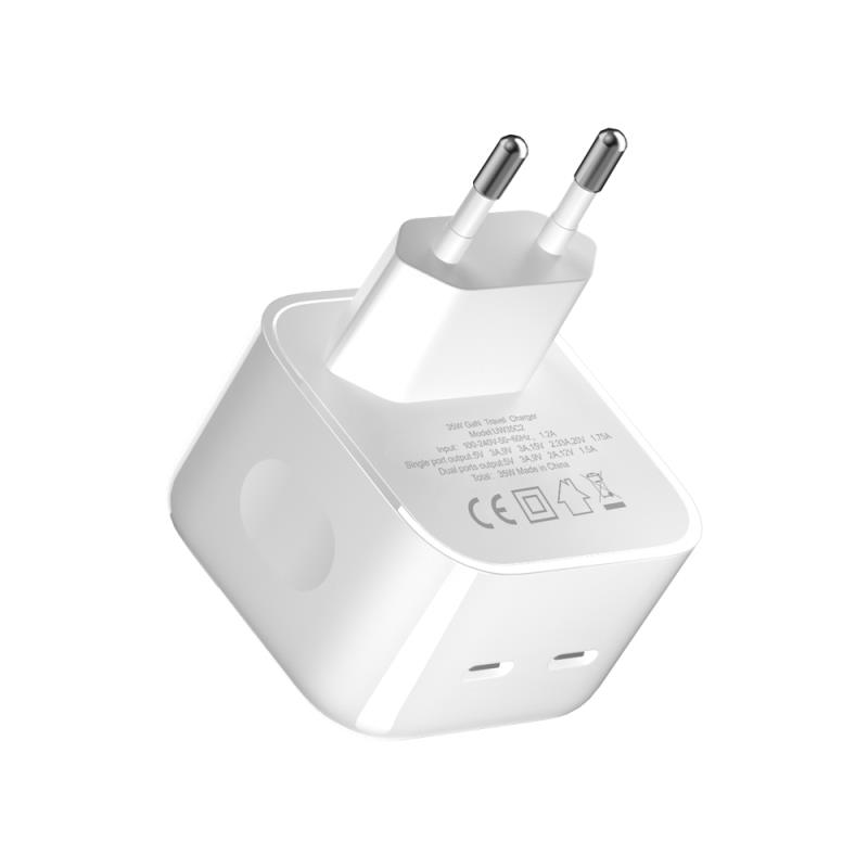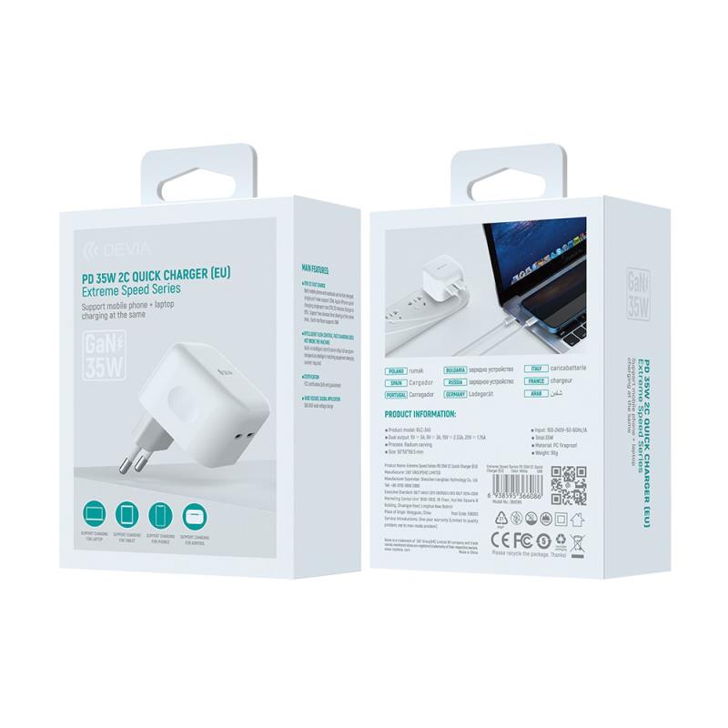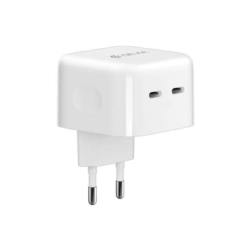 Φορτιστής Ταξιδίου Ταχείας Φόρτισης Devia EA379 με Διπλή Έξοδο 2xUSB C GaN PD 35W Extreme Λευκό