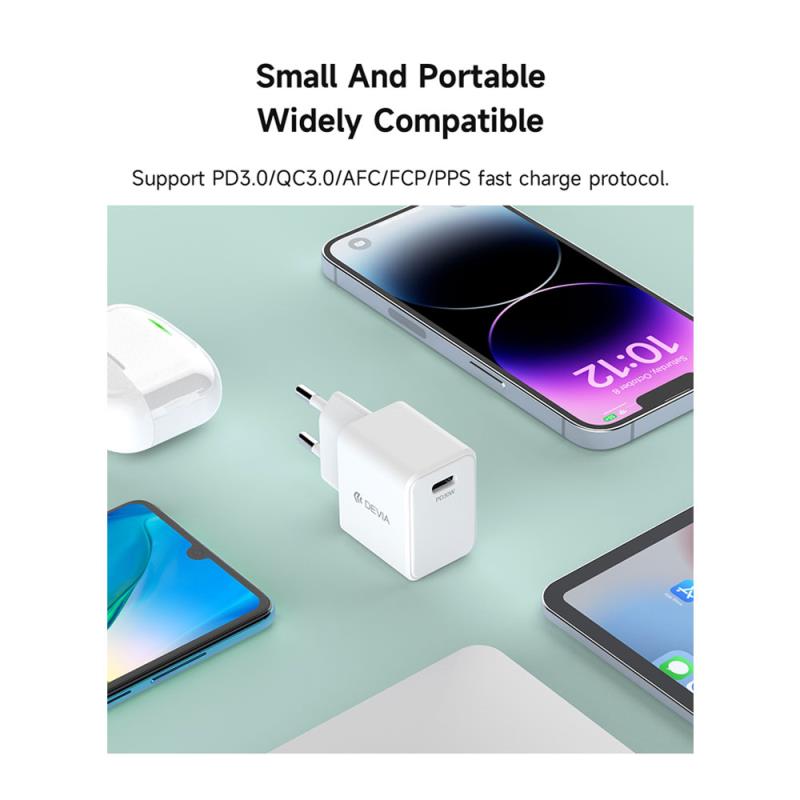 Φορτιστής Ταξιδίου Ταχείας Φόρτισης Devia EA455 με Έξοδο USB C GaN PD 30W GRS Λευκό