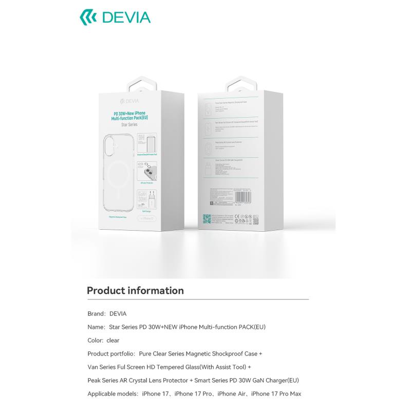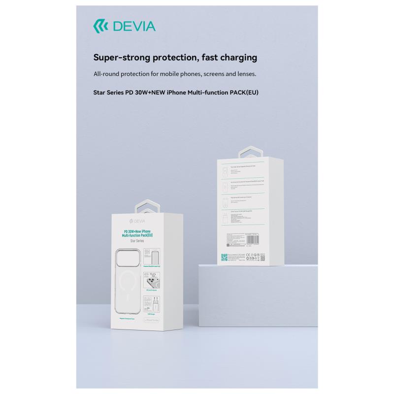 Φορτιστής Ταξιδίου Ταχείας Φόρτισης Devia με Έξοδο USB C PD 30W με & Θήκη ShockProof & Tempered Glass & Camera Cover Apple iPhone 17 Pro Max Star Pack Λευκό
