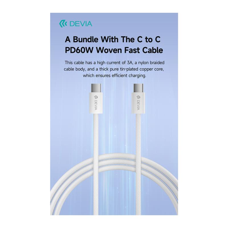 Φορτιστής Ταξιδίου Ταχείας Φόρτισης Devia RCE-3005CL με Έξοδο USB C GaN PD 30W & Καλώδιο USB C σε USB C 1m Smart Λευκό