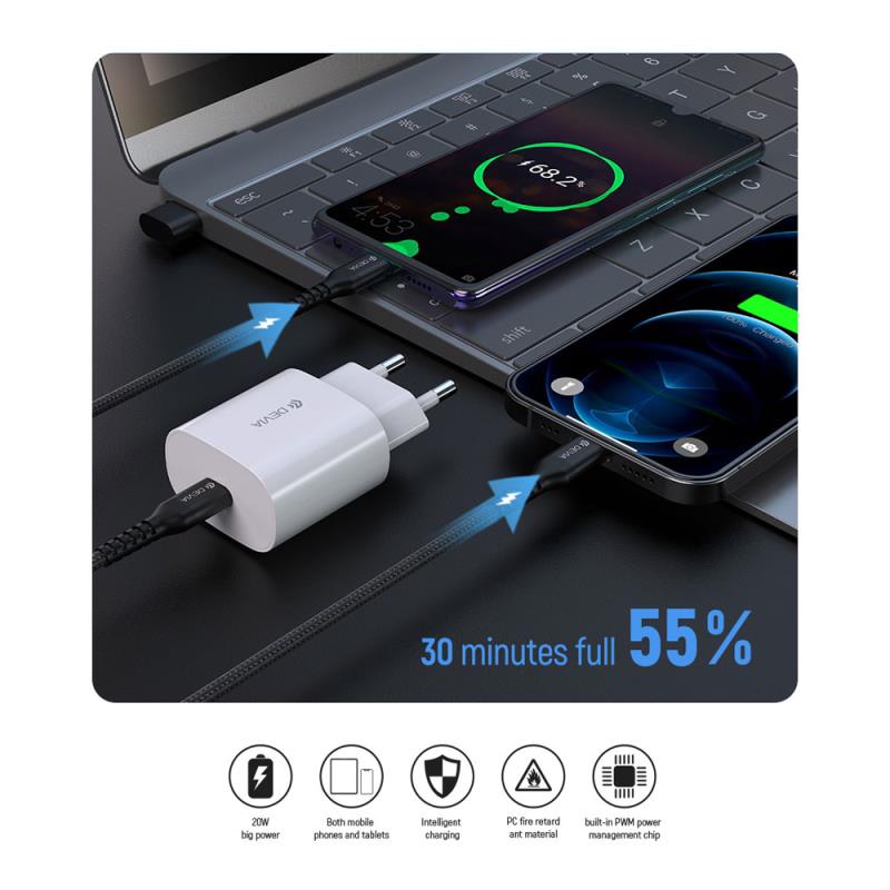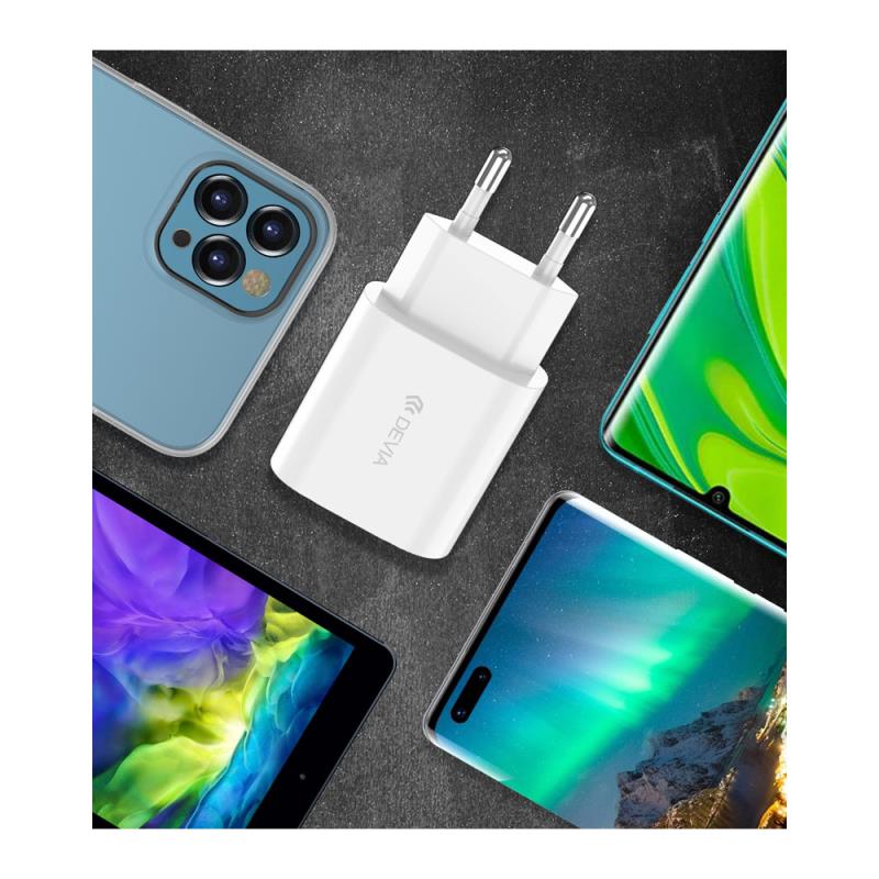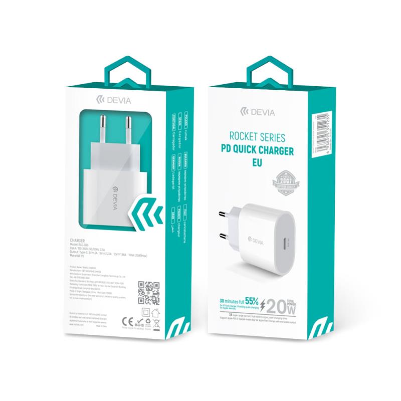 Φορτιστής ταξιδίου ταχείας φόρτισης Devia 20W με Έξοδο USB C τεχνολογίας Power Delivery 3.0. Εξοπλισμένος με ισχύ 20W και τεχνολογία PD 3.0 προσφέρει ταχύτερη και αποτελεσματικότερη φόρτιση σε σχέση με τους απλούς φορτιστές, για κάθε συσκευή που υποστηρίζει ταχεία φόρτιση. Φορτίσετε τις συσκευές αλλά και τα gadget σας εύκολα και γρήγορα κατά τη διάρκεια των διαδρομών σας και απολαύστε τα πλεονεκτήματα της γρήγορης και αποδοτικής φόρτισης! Παρέχει προστασία από υπερθέρμανση, υπερφόρτιση, υπερβολική τάση και βραχυκύκλωμα.