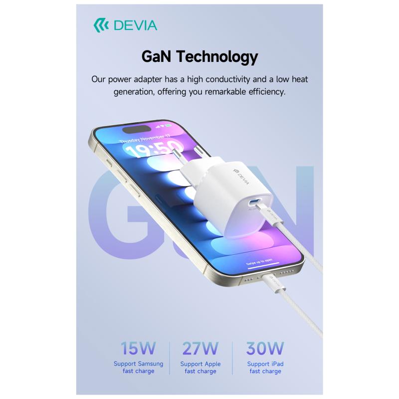 Φορτιστής Ταξιδίου Ταχείας Φόρτισης Devia RCE-3005CL με Έξοδο USB C GaN PD 30W Smart Λευκό