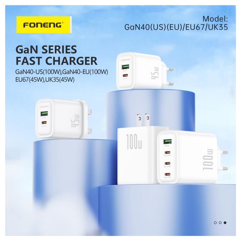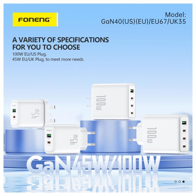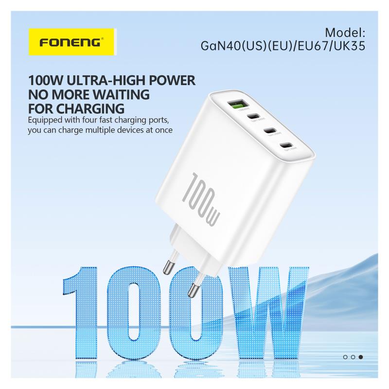 Φορτιστής Ταξιδίου Ταχείας Φόρτισης Foneng GaN40-EU με Τετραπλή Έξοδο USB A & 3xUSB C GaN 100W 5A Λευκό