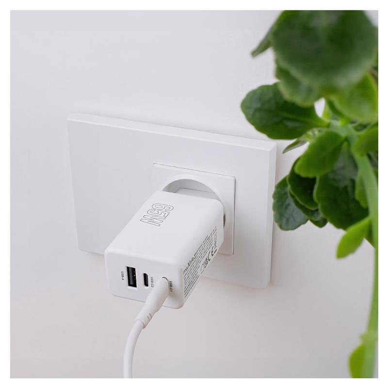 Φορτιστής Ταξιδίου Ταχείας Φόρτισης Maxlife MXTC-08-65ACC με Τριπλή Έξοδο USB A & 2xUSB C PD QC 65W Λευκό