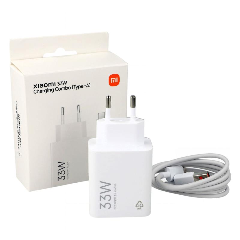 Φορτιστής Ταξιδίου Ταχείας Φόρτισης Xiaomi Combo με Έξοδο USB A 33W & Καλώδιο USB C 1m Λευκό