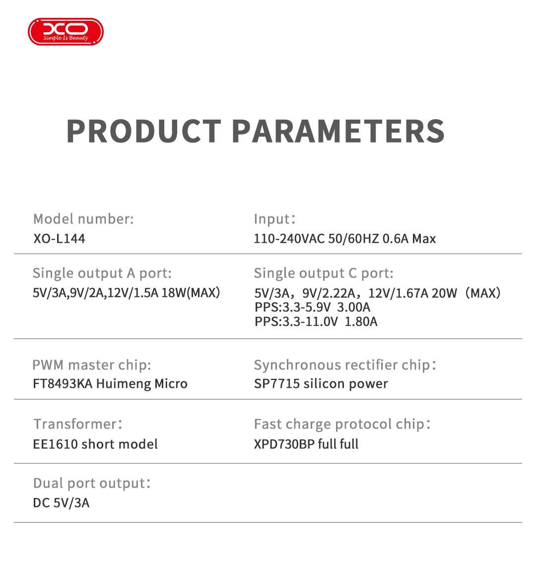 XO L144 ΦΟΡΤΙΣΤΗΣ 20W, 2 ΘΥΡΕΣ, ΜΕ ΚΑΛΩΔΙΟ LIGHTNING, ΛΕΥΚΟΣ