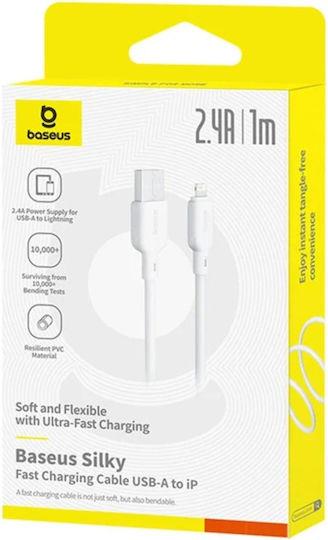 BASEUS SILKY SERIES, ΚΑΛΩΔΙΟ ΓΡΗΓΟΡΗΣ ΦΟΡΤΙΣΗΣ, LIGHTNING, 2,4A, 2m, ΛΕΥΚΟ