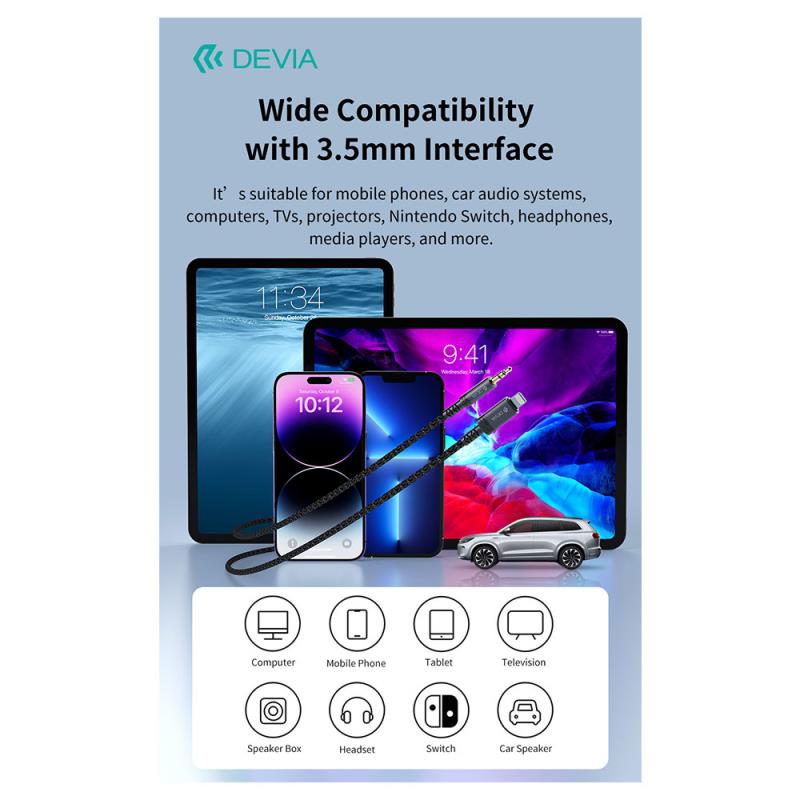 Καλώδιο Ήχου Woven Devia EC619 Lightning σε 3.5mm 1m Ipure Μαύρο