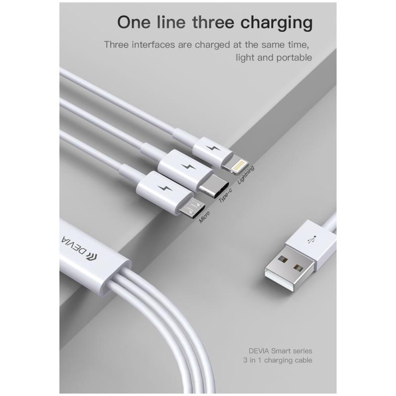 Καλώδιο Σύνδεσης USB 2.0 3 σε 1 Devia EC141 USB A σε micro USB & USB C & Lightning 15W 1.2m Smart Λευκό