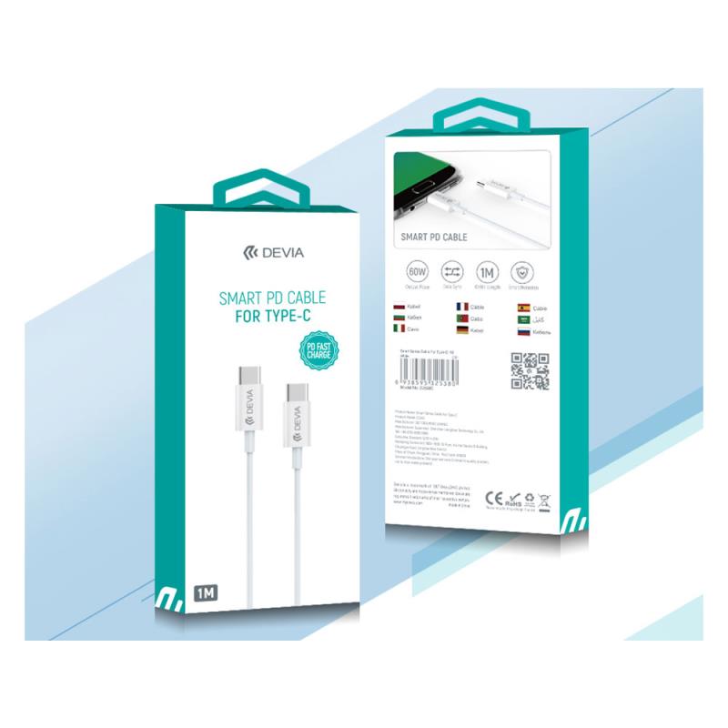 Καλώδιο Σύνδεσης USB 2.0 Devia EC042 USB C σε USB C PD 60W 1.2m Smart Λευκό